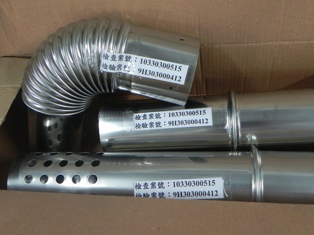 為瞭解廚具行及熱水器製造商供應之熱水器用排氣管材質是否符合國家標準規定之不銹鋼304規範,經濟部標準檢驗局於103年12月間在臺北市之水電材料行、廚具行等購買5件及臺中、雲林、新竹、桃園、臺北及新北市等地區廠商取樣16件進行檢測,檢測結果,21件商品之材質全數符合。