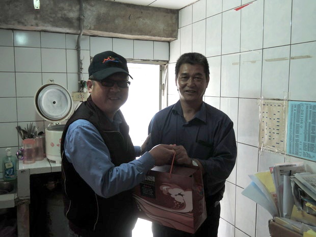 莒光鄉大坪村曹常容(容叔)鄉親於五月五日慶祝六十歲生日,鄉公所由曹課長以樹前往祝賀並與容叔閒話家常,祝福他身體健康、平安快樂。
