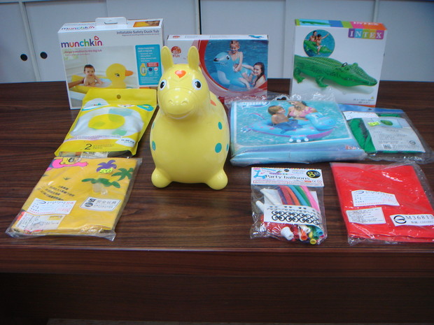 價格便宜、款式多變的「充氣玩具」是大、小朋友喜愛購買及遊戲玩耍使用的商品。經濟部標準檢驗局為關心兒童健康安全及瞭解市售「充氣玩具」品質,於南部地區之百貨、量販店、藥局及零售商店等地,購買20件樣品進行「品質檢測」及「標示檢查」,檢測結果發現有1件商品「塑化劑含量」超過國家標準0.1﹪限量值規定;另有10件「標示檢查」不符合規定。