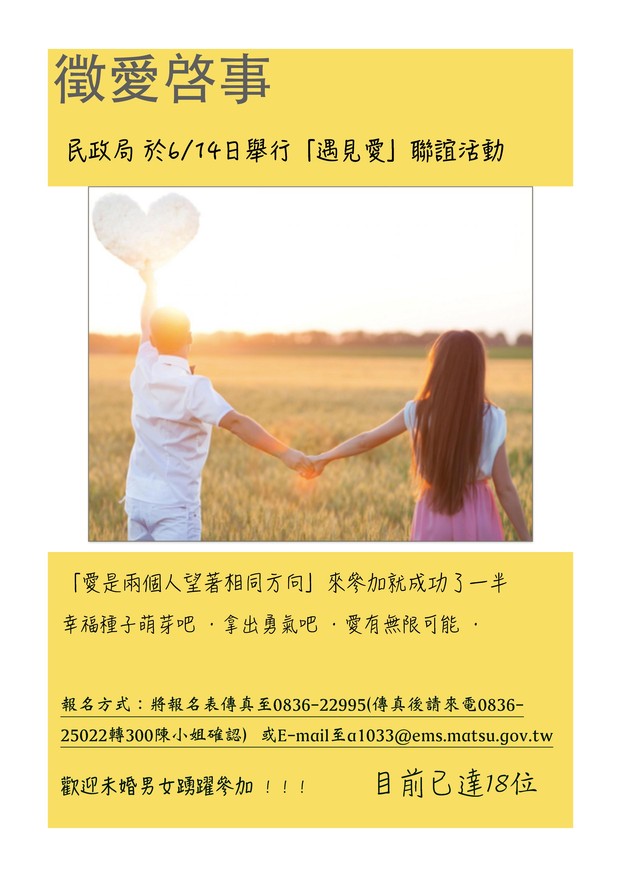民政局6月14日辦理「遇見幸福」聯誼活動
