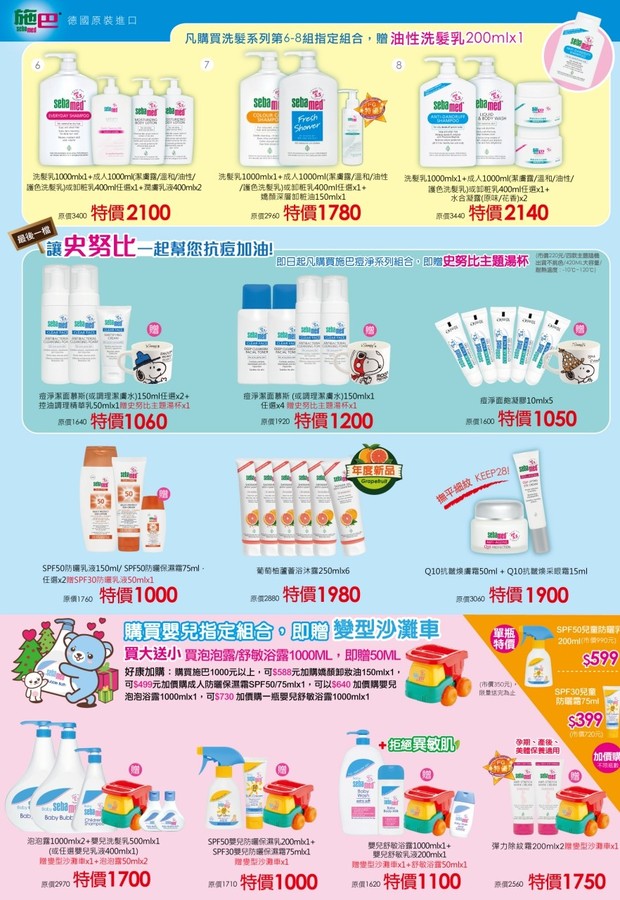 凡選購下列痘淨系列組合即贈送史努比主題湯杯。