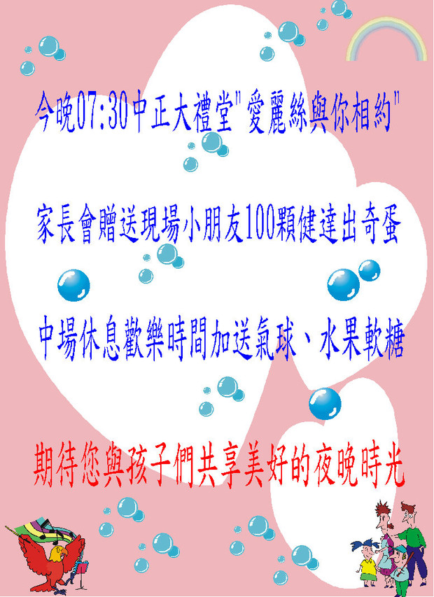 今晚7:30中正六月音符演出 現場備有精美禮品 歡迎蒞臨觀賞