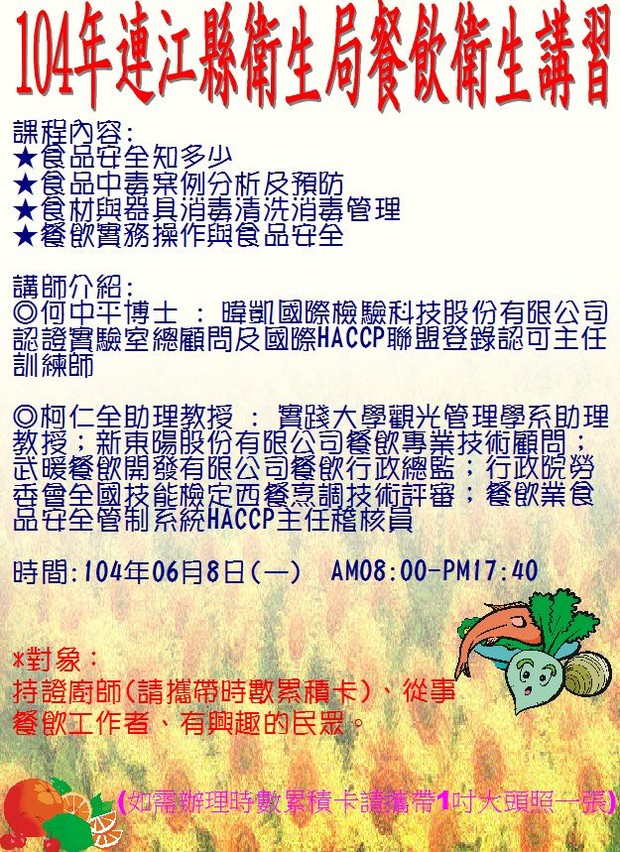 104年6月8日餐飲衛生講習如期舉辦通知