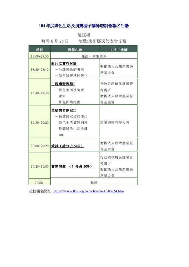 綠色生活及消費種子講師培訓營報名活動 --閱讀人次 : 645 ◎ 活動目的