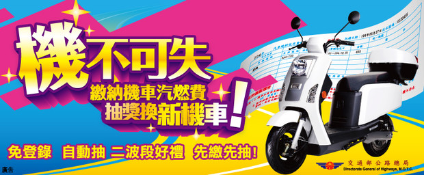 快喔 ! 繳納機車汽燃費有機會抽大獎! --閱讀人次 : 987 一、活動說明: