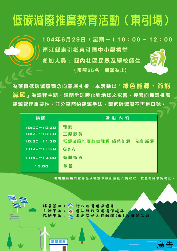 6/29低碳減廢推廣教育活動(東引、莒光) --閱讀人次 : 1200 <東引場>