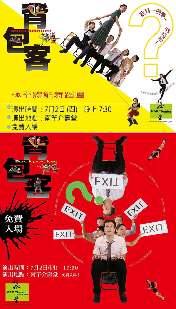 【記者曹重偉�南竿報導】在國內別樹一格的「極致體能舞蹈團」在縣府文化局積極接洽下,今天特別受邀來馬演出現代舞「背包客」(Backpacker),是3歲至100歲都看得到的現代舞;今晚7時30分於南竿介壽堂登場,免費入場,歡迎軍民踴躍前往欣賞。