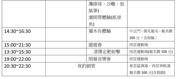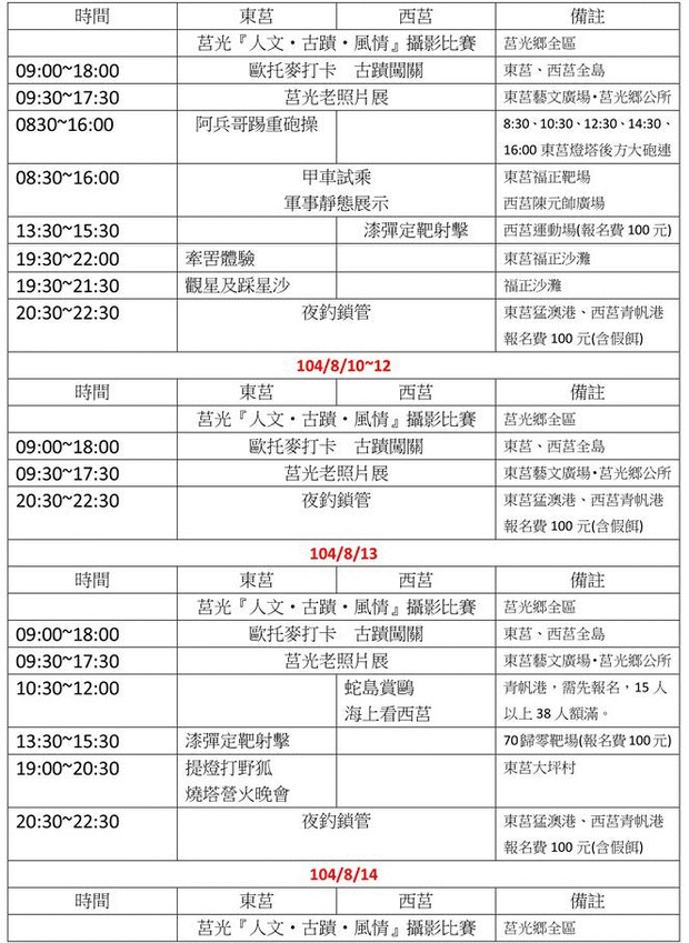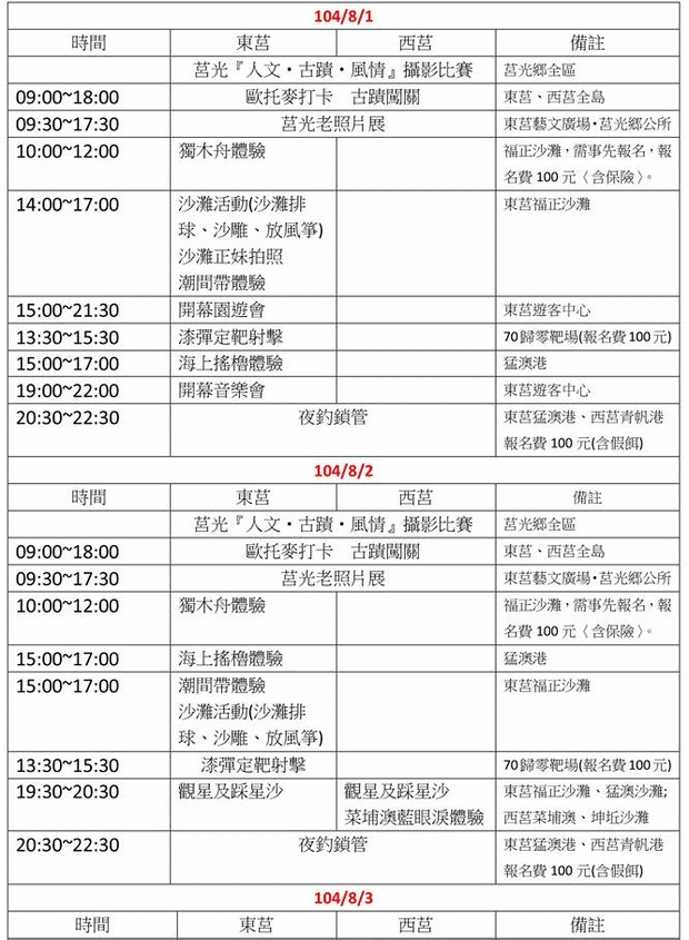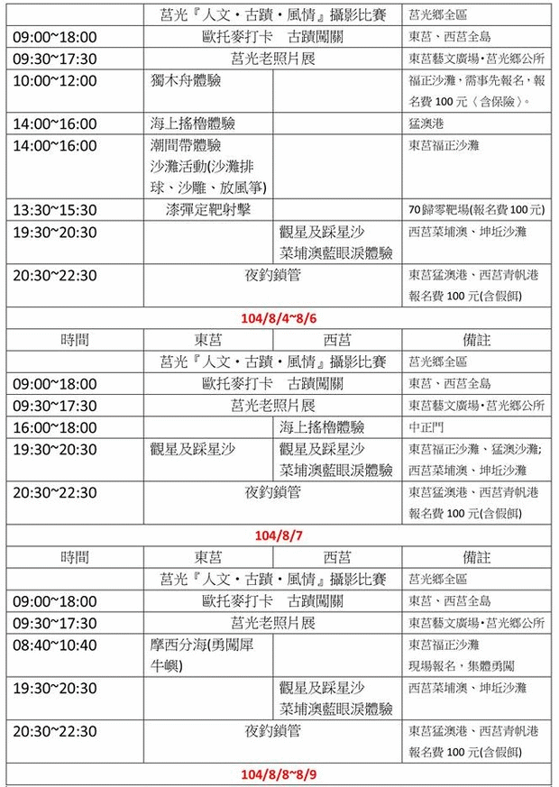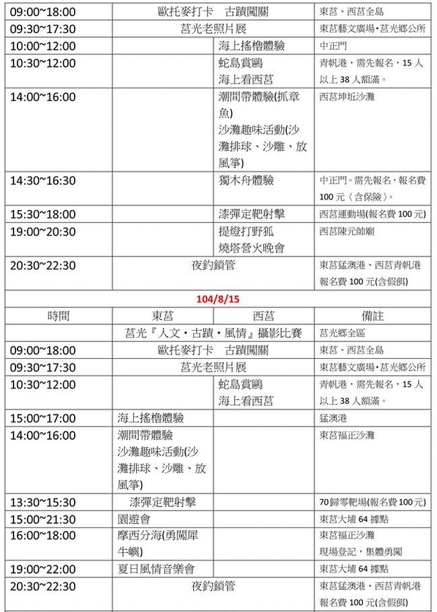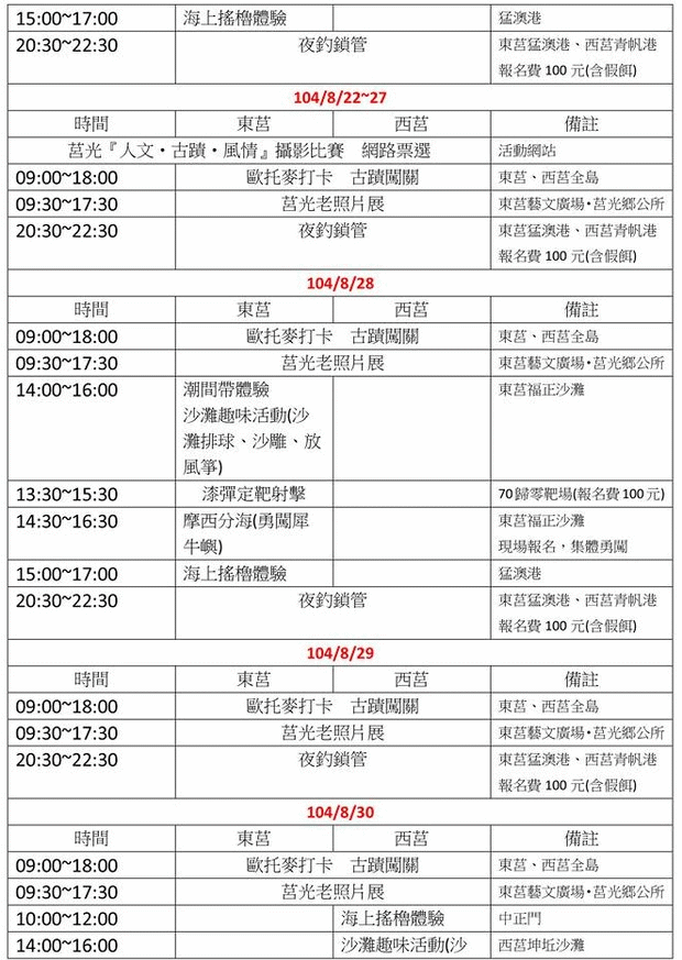 2015莒光海洋觀光年 活動時間表 --閱讀人次 : 3827 2015莒光海洋觀光年 活動時間表