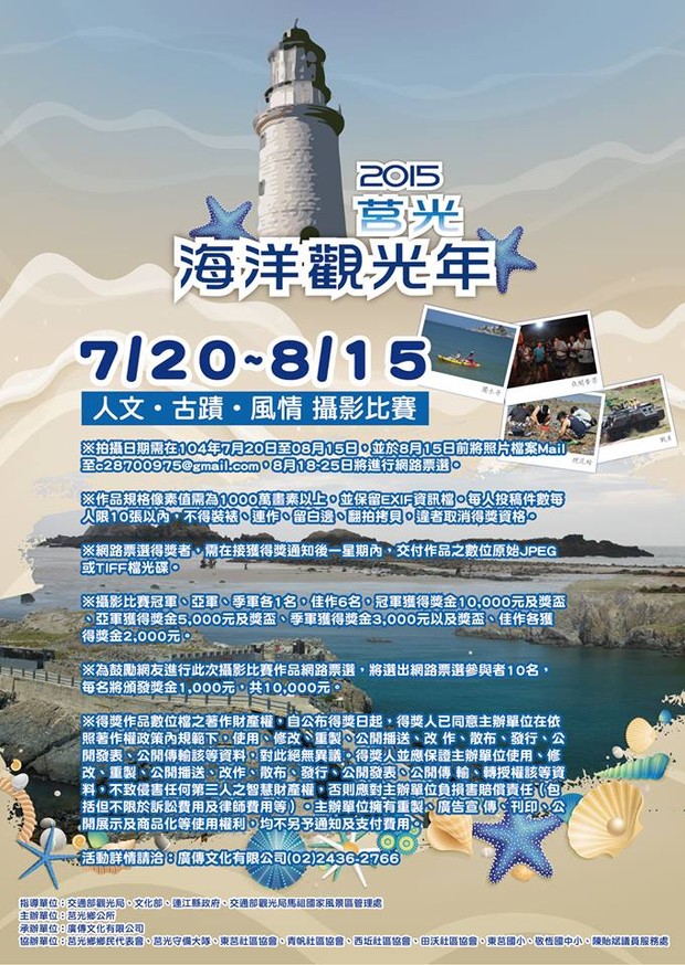 ※拍攝日期需在104年7月20日至08月15日,並於8月15日前將照片檔案Mail至c28700975@gmail.com,8月18~25日將進行網路票選。