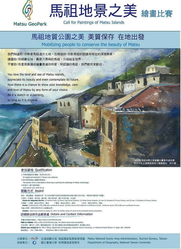 倒數計時!馬祖地景之美繪畫創意比賽將於104年8月31日截止收件,敬請踴躍投稿報名。
