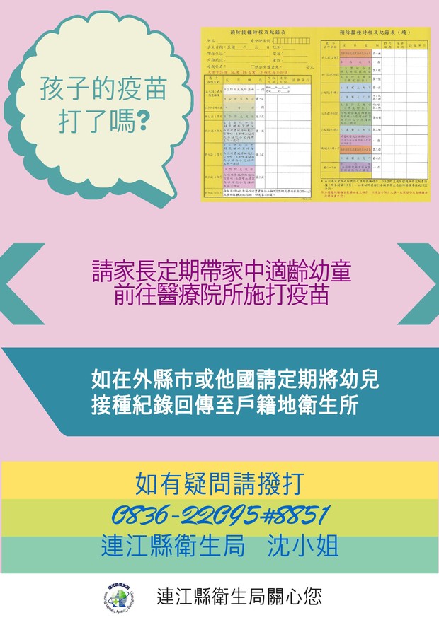 請家長定期帶家中適齡幼童前往醫療院所施打疫苗