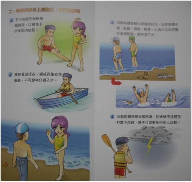 5、 對四周水域環境不熟時,不隨意下水。