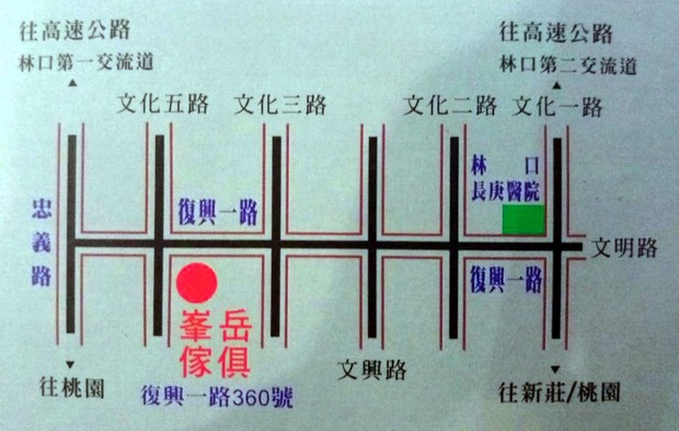 現品展示中心:台灣桃園市林口區復興一路360號(佔地數百坪)(近林口長庚醫院)