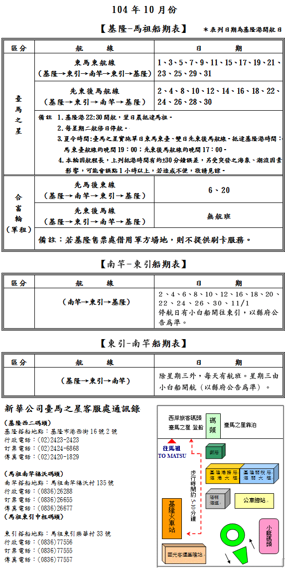 10月臺馬之星航班表(含東引-南竿航班日期)