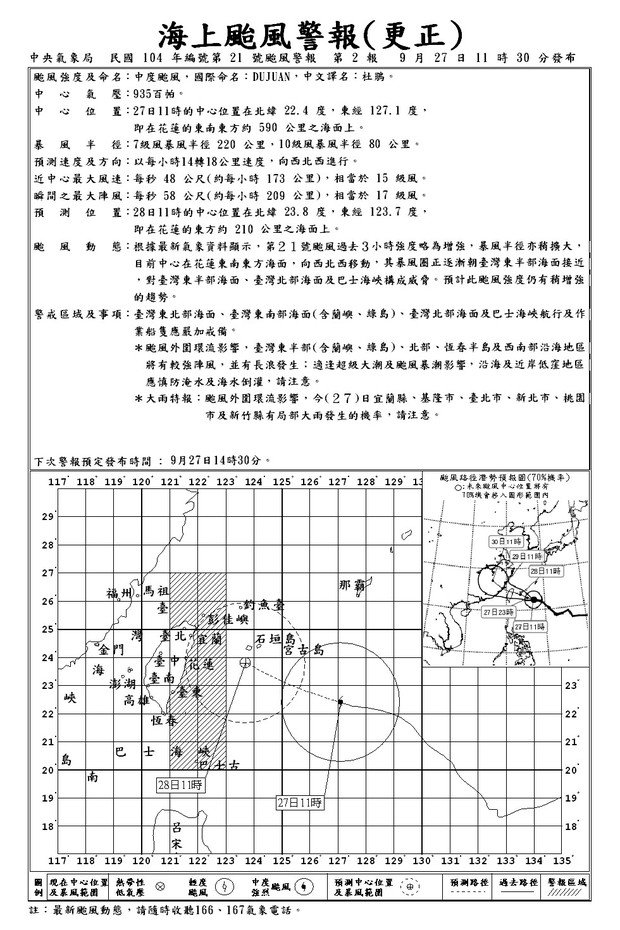 受杜鵑颱風影響9月27日馬祖至馬尾航班停航