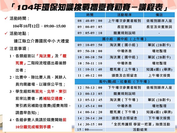 一、活動名稱:104年度連江縣環保知識挑戰擂台賽
