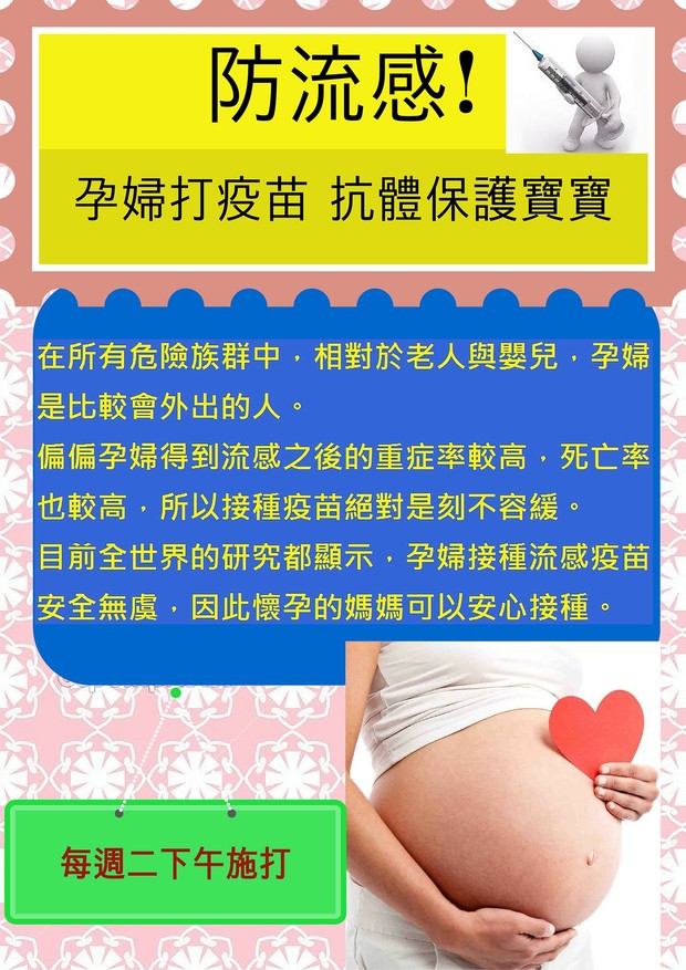 連江縣立醫院:週三上午(長者)、下午(幼兒)、週二下午(孕婦),週四下午(長者)。