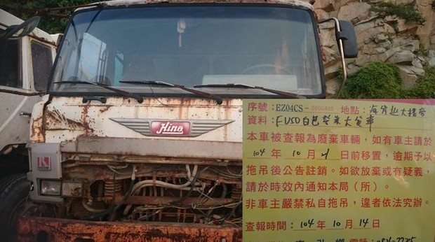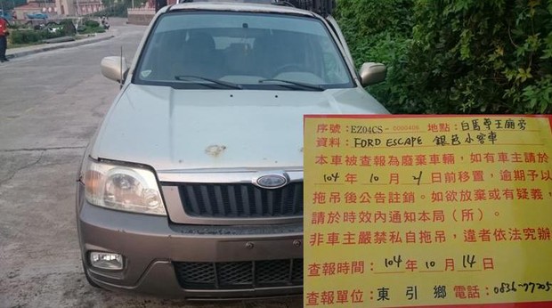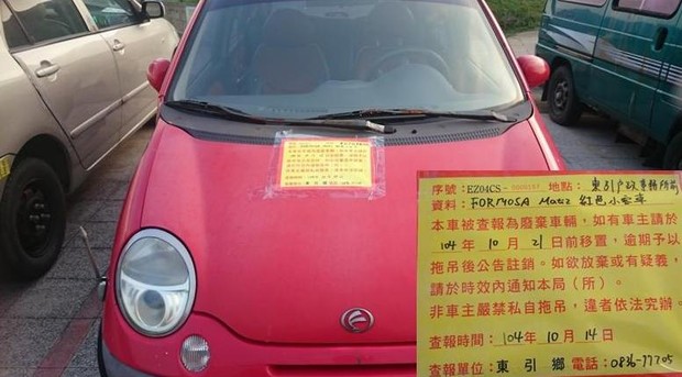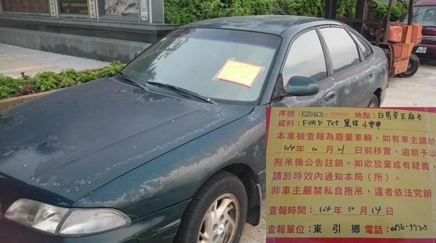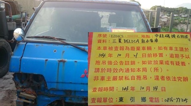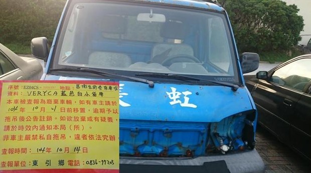 東引鄉公所張貼查報廢棄車輛乙批