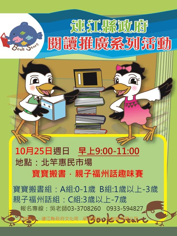 寶寶搬書.親子福州話趣味賽題庫~快報名喔 --閱讀人次 : 868 寶寶搬書及福州話趣味賽即將在北竿起跑囉!
