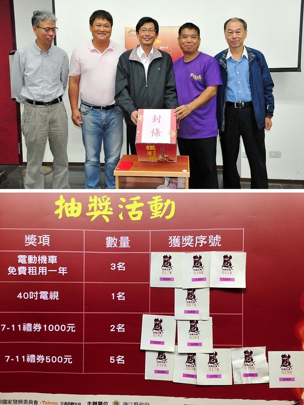 特獎3名:電動機車免費租借1年,序號為:0178、0390、0416。