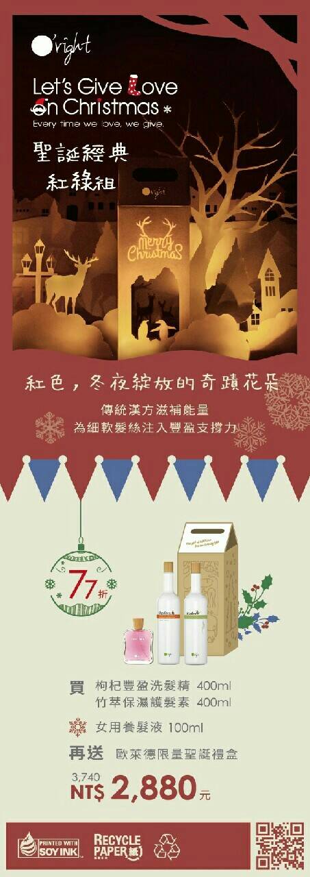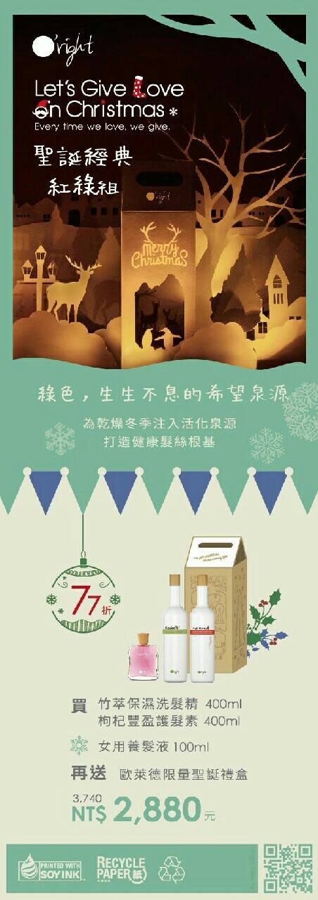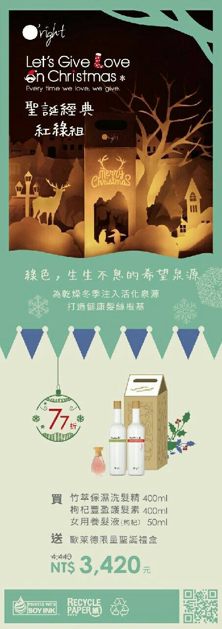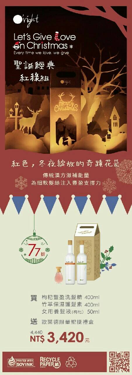 這次活動養髮液搭配六種組合包含"得獎聖誕禮盒(會發光喔)"