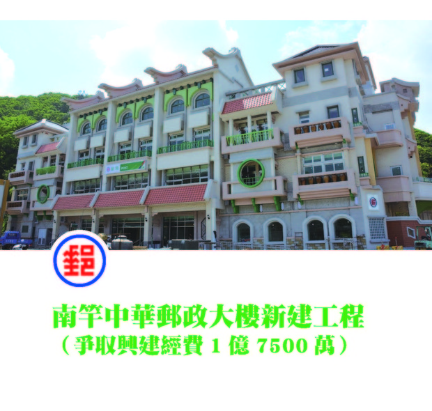 南竿中華郵政大樓新建工程(爭取興建經費1 億7500 萬),104/12/10落成。