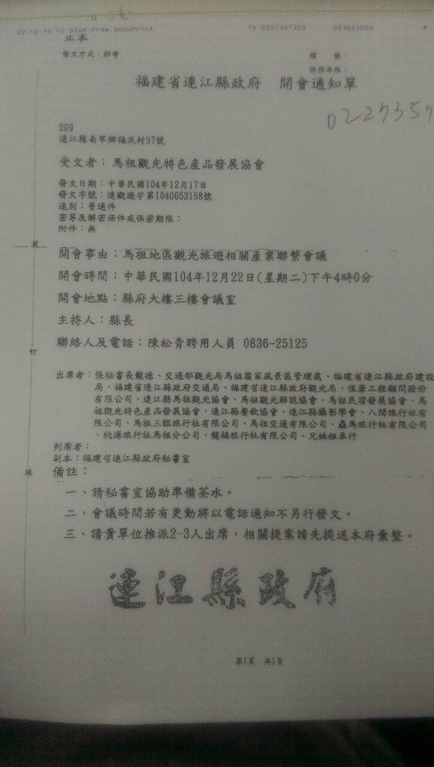 馬祖地區觀光產業會議---針對民間私釀老酒議題 --閱讀人次 : 987 本次會議由馬祖觀光特色產品發展協會向陳書建副議長陳情,會議召開目的為因馬習會後,馬祖老酒在國際市場上一炮而紅,馬祖酒廠老酒供不應求,陳副議長回應協會陳情,要求縣府舉辦本次會議,主要係針對馬祖地區民間私人釀製老酒,由公部門出面整合為合法之商品輔導上市,提升地方產業競爭力,增進地方產業永續經營,舉凡對老酒產業有興趣及疑問的民眾、業者都歡迎參與,會議於本日(12/22)下午四點於縣府大樓三樓之會議室。