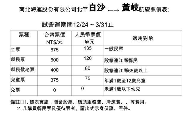 一、票價部分(試營運期間—12/24-3/31)