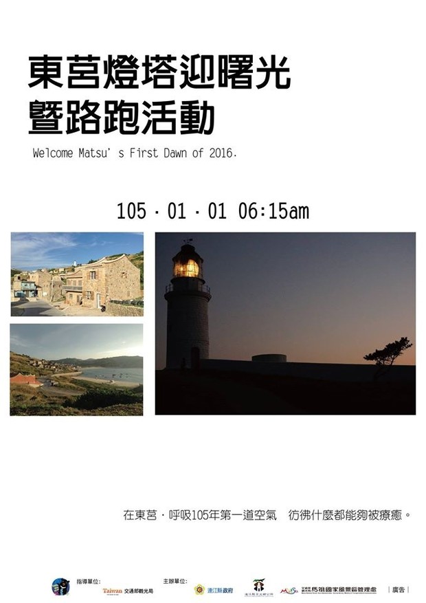 【記者吳嘉榮報導】2016瘋跨年、迎曙光,莒光熱情邀請你!馬管處31日晚間7時在東莒藝文廣場舉辦莒光地區聯歡晚會,明年1月1日上午6時15分東莒燈塔舉辦105年元旦東莒燈塔迎曙光暨升旗路跑活動,一起送走2015,迎接2016!