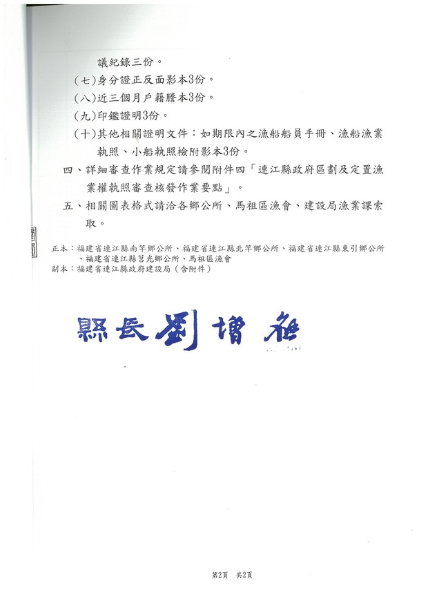 (一)連江縣漁業權執照申請書三份及其應附文件(格式如附件)。