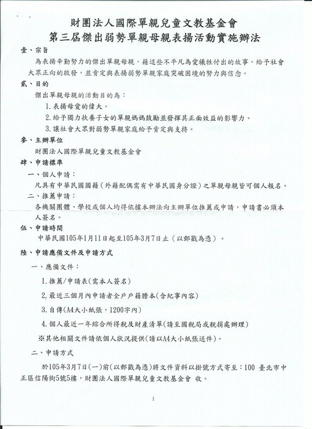 2016第三屆傑出弱勢單親母親表揚活動