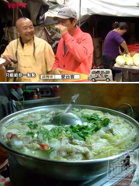 在台灣有「怪老子神廚」曾力忠(上圖左)、右為三立電視節目主持人黃西田,後右是二姐曾憲明。下圖是曾力忠招牌菜「酸菜白肉鍋」。(檔案圖片:三立電視愛台客節目)