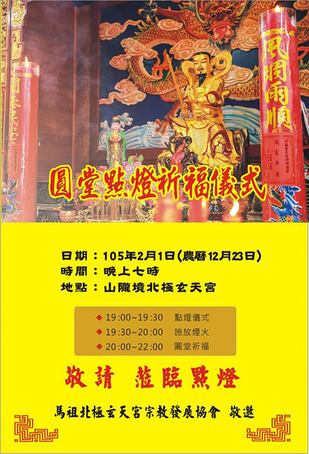 山隴境北極玄天宮 2/1晚間圓堂點燈祈福 --閱讀人次 : 1050 --2016-01-30 馬祖日報