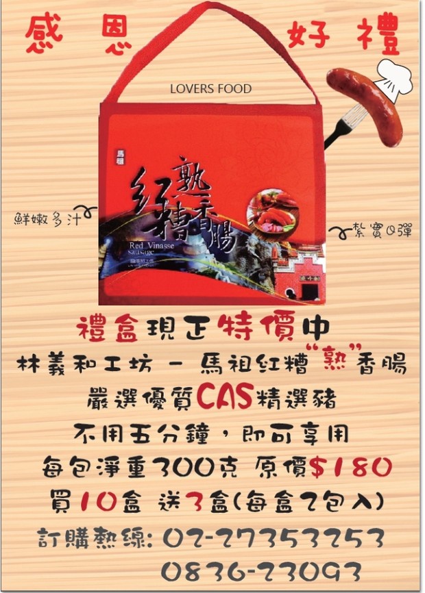 林義和工坊紅糟熟香腸 今天到貨