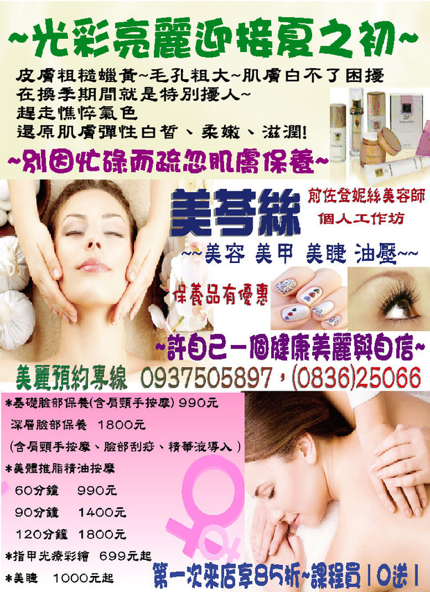 美芩絲~{護膚~油壓~美睫~美甲}~歡迎預約