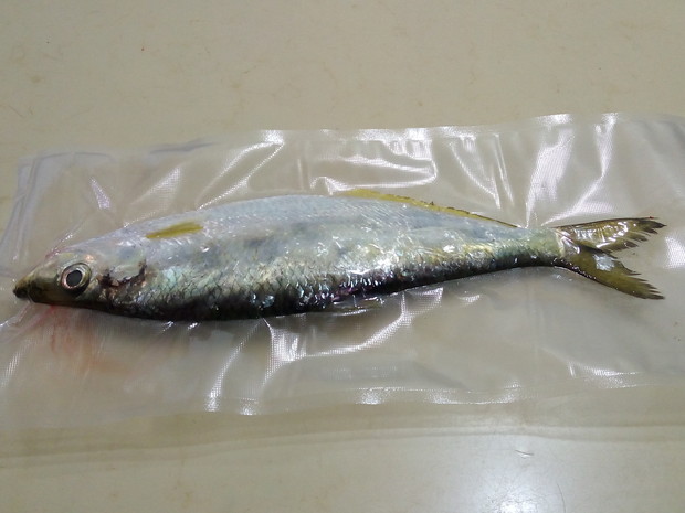 新鮮白力魚,未去鱗清肚直接真空包裝後冷凍保存。