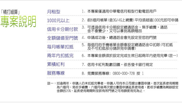 即日起只要您的電信月帳單有1000元以上,即可辦理,