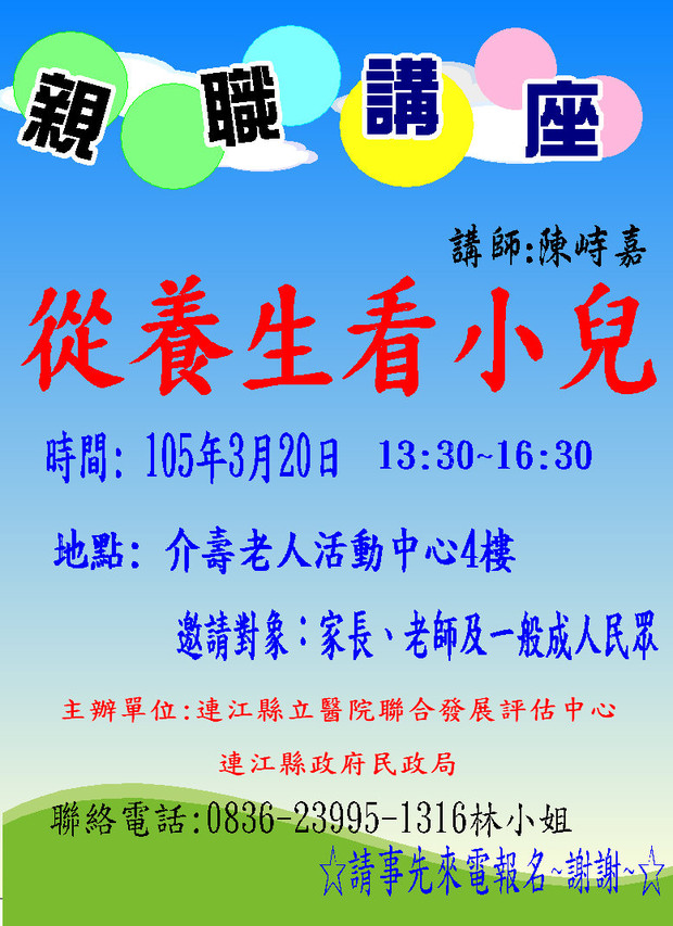 由陳峙嘉醫師和大家一同從中醫的角度來認識小兒及如何透過養生方式來照顧小