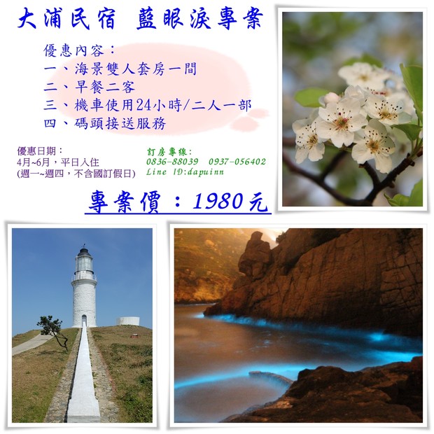 大浦民宿 4~6月藍眼淚專案