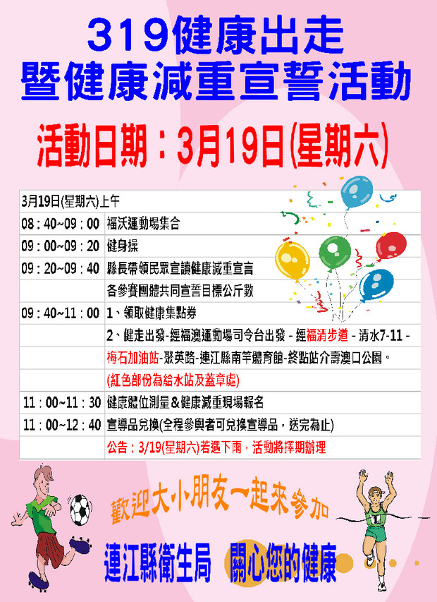 319(星期六)衛生局健走活動正常舉行