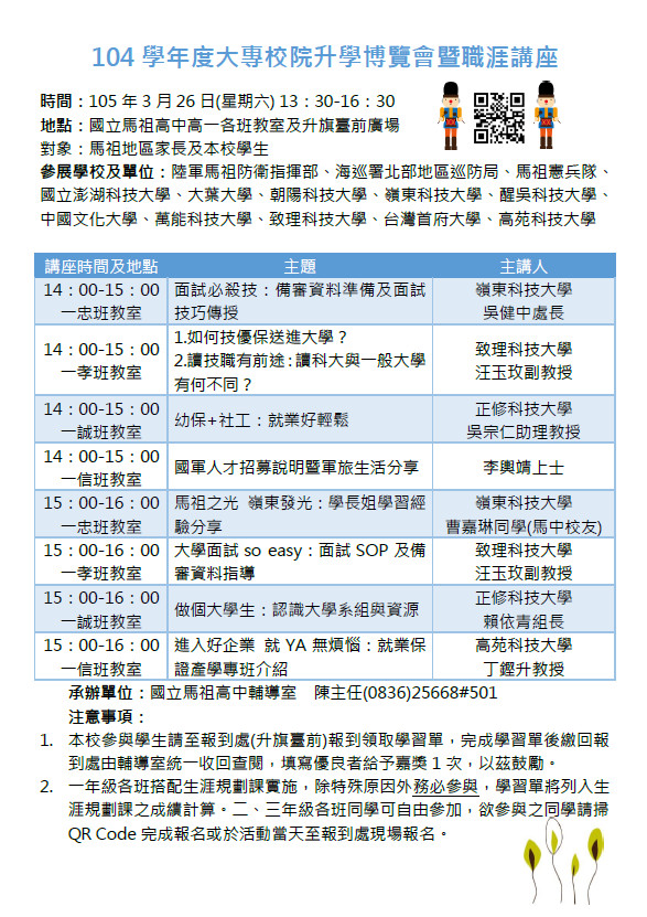 3/26(六)大專校院升學博覽會暨職涯講座