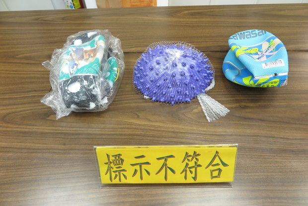 (二)中文標示:計3件(項次2、4及6)不符合規定,不符合情形包括未標示產地、警告字體未大於5mm×5mm、本體與外包裝標示之產地與製造商資訊不一致。