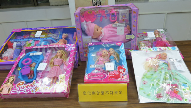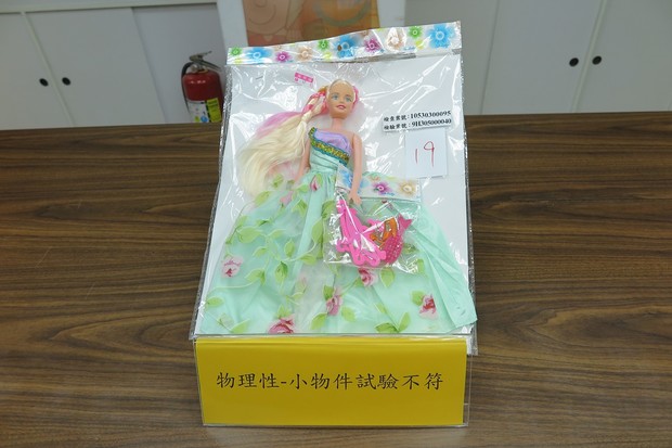 款式多變、色彩鮮豔及可替換造型的塑膠娃娃是陪伴許多小朋友童年的玩具。經濟部標準檢驗局為關心兒童健康安全及瞭解市售塑膠娃娃玩具品質,105年1月於臺北市及新北市之百貨公司、玩具店及零售商店等販售通路,購買20件樣品進行「品質檢測」及「標示查核」,檢測結果發現有1件「物理性」不符合國家標準之小物件測試,有6件「塑化劑含量」超過國家標準0.1﹪限量值規定;另有10件「中文標示」不符合規定。