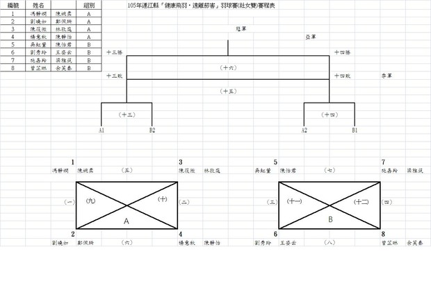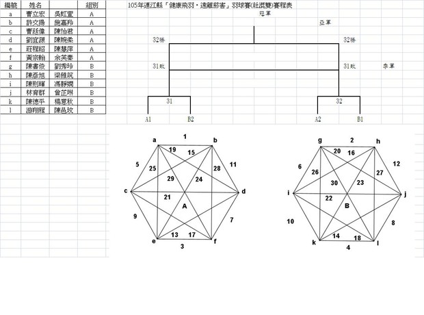 105年「健康飛羽、遠離菸害」羽球賽賽程