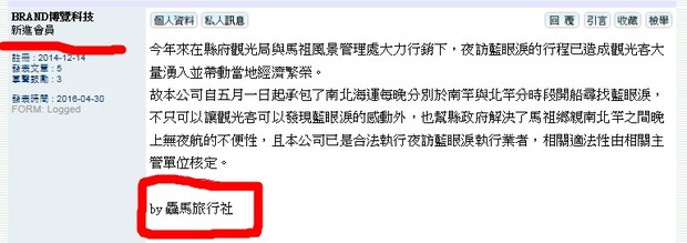 好好笑,驫馬不要在自打嘴巴了,不要在假借幫政府解決南北竿夜航名義來看藍眼淚,請正大光明的去贏得別人的掌聲吧!鑽漏洞就鑽漏洞,晚上包船上下南北竿大家都看得出來驫馬藉由這樣出海看藍眼淚而已!而別人正正當當去跟政府爭取合法經營的這麼辛苦,既然如此大家一起走不合法就好啦?是這樣說嗎?要搞得天下大亂?白天一堆船班沒坐滿人,我就不信一定要晚上還要包船上下南北竿,而且驫馬你是在馬資網上公然說出海追淚的價錢,而不是收費南北竿正常的航班的價錢喔!所以這不是假借名義是什麼呢?沒觸法嗎?南北不是育樂船吧?驫馬你這樣收費是合法化嗎?還是政府挺你這樣做呢?請政府部門給個交代謝謝!以下是我儲存起來的證據!驫馬假借南北竿晚上航行載客收人看藍眼淚的費用,裡面說的一清二楚,所以並不是為了乘客跟政府,而是帶頭作亂的一家旅行社而已!這是我的評論,說不好請見諒 PS:證據1跟證據3是同一個人留言,而證據3有署名驫馬旅行社,我想這就是鐵證,再來就是南北海運難道不知道驫馬旅行社晚上包船的目的嗎?還大剌剌的認同這種做法,根本就是暗中幫助驫馬,讓大家都看不起你們這種做法,只為了單存被包船所以一定要跑還是為了私下利益大家自己心知肚明 ,驫馬就算是跟政府申請過藍眼淚事項,也應該是跟在地合法育樂船合作包船才是,怎會輪到南北?南北不是育樂項目吧?據我所知目前也只有龍福旅行社是有合法經營育樂船,沒說到的請見諒,真心希望看到大家一起來好好合作經營起來馬祖的觀光,而不是個人利益去圖利偏袒,造成大家困擾