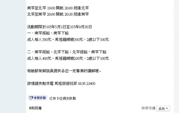 也可以公然上網招攬南北竿交通船的客源嗎?