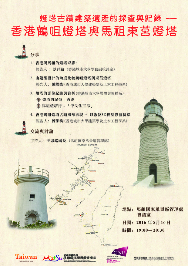 透過香港城市大學燈塔景祥祜教授及陳樂陶同學,與鄉親好友一同分享燈塔的故事及燈塔與觀光之間的關係,及未來燈塔的展望。歡迎有興趣的遊客及鄉親到場交流,現場人數限定40位,座位先到先得,敬請提早入場。