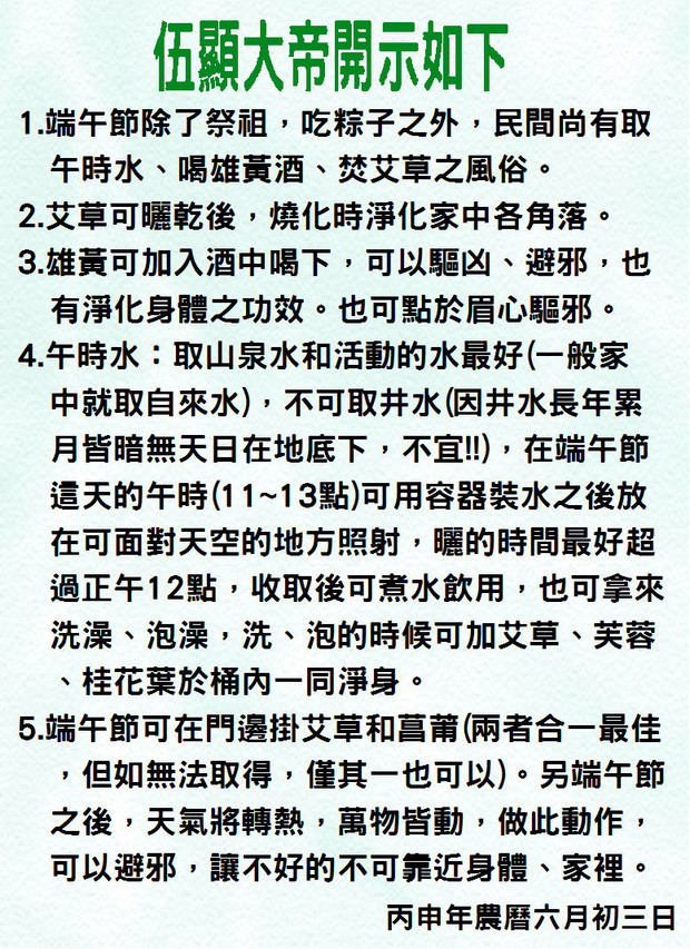 伍顯大帝丙申年農曆六月初三日開示如下,敬請鄉親們參考~~