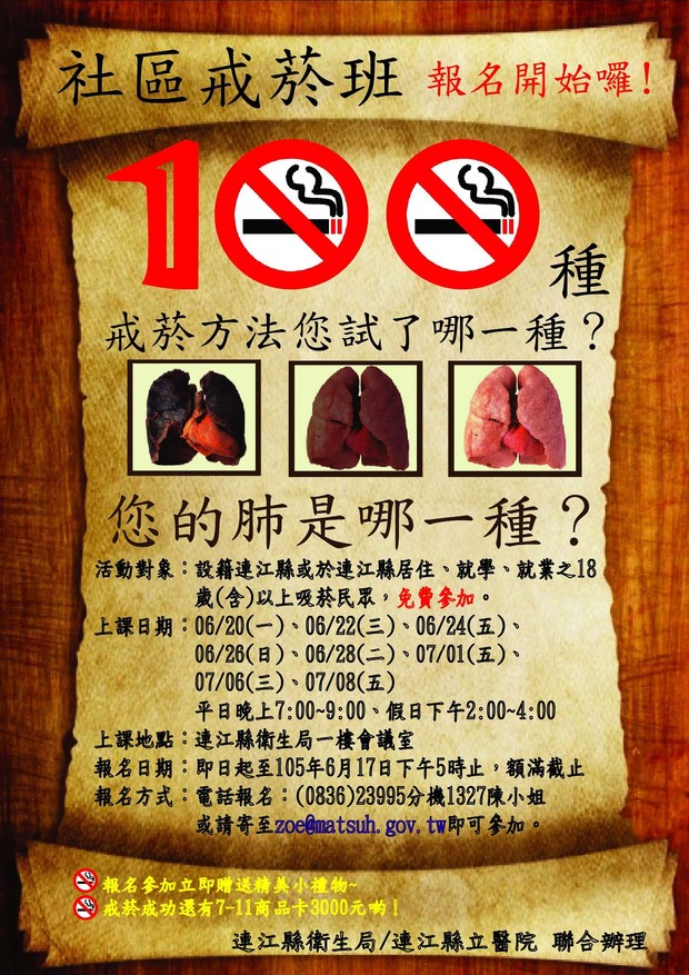 原訂於6/17截止報名延至6/20下午5:00前喲~歡迎民眾參加戒菸