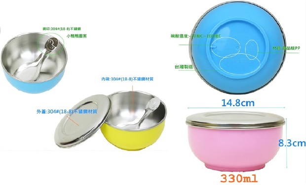 雙層幼兒隔熱碗/不鏽鋼碗蓋附湯匙